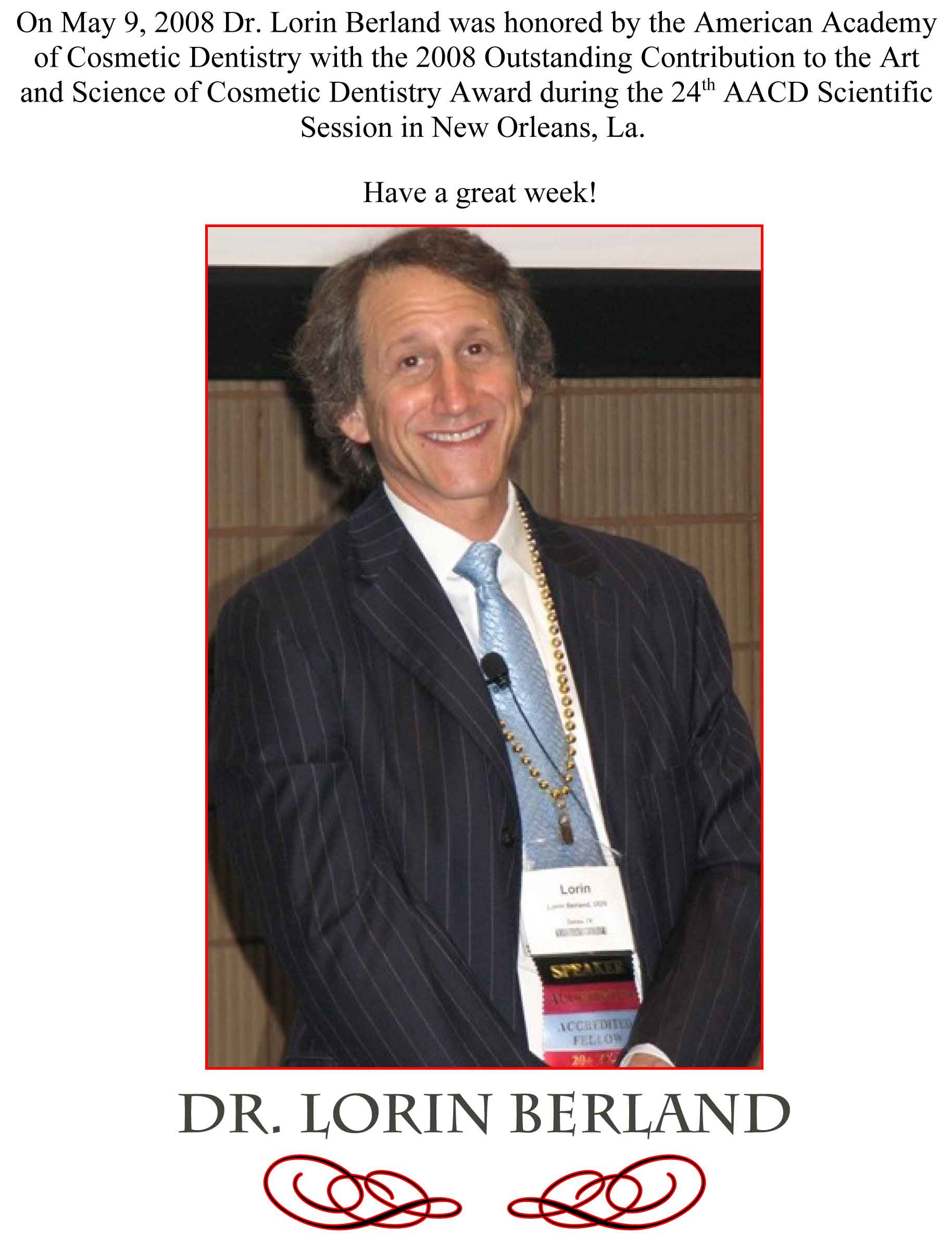Dr. Berland Honord with Award in 2008…