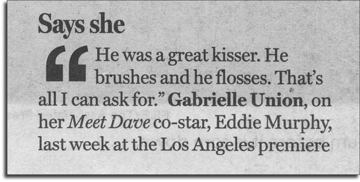 Says He's a great kisser…